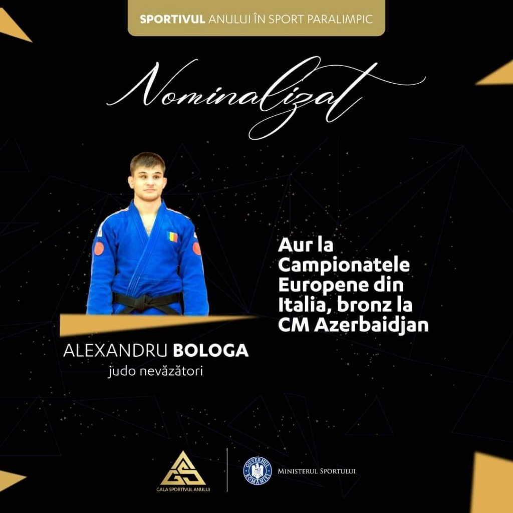 Judoka nevazator Alexandru Bologa, medaliat cu aur la Campionatele Europene si cu bronz la Campionatele Mondiale, a fost declarat Sportivul Anului 2022 la sectiunea paralimpica (masculin).